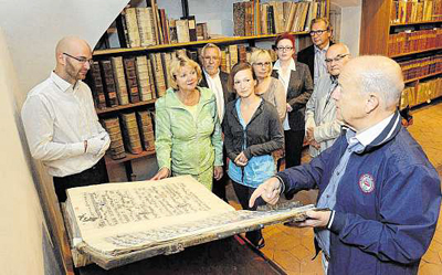 2 500 Euro soll ein Anfang für eine Restaurierung der acht mittelalterlichen Chorbücher des Naumburger Domes gemacht werden. Fünf sind in sehr schlechtem Zustand, ein Öffnen nicht mehr möglich (großes Foto). Zuerst soll die schwierige Digitalisierung durch die Thüringer Universitäts- und Landesbibliothek erfolgen. Das Geld stammt vom Lions-Abend der Begegnung im Juni.