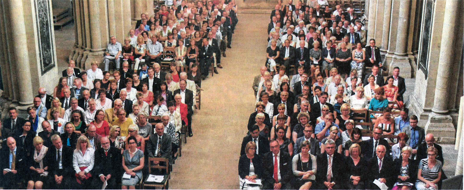 Für ihn, so Linden, der mit Ehefrau Maria nach Naumburg gekommen war und der von Stadtoberhaupt Bernward Küper sowie dessen Vorgänger Hilmar Preißer herzlich willkommen geheißen wurde, sei es eine große Ehre, im Naumburger Dom sprechen zu dürfen. Schließlich sei es dieses Bauwerk gewesen, das 1988 auf Aachener Seite den Ausschlag gegeben hatte, sich für Naumburg und nicht für Meißen zu entscheiden.