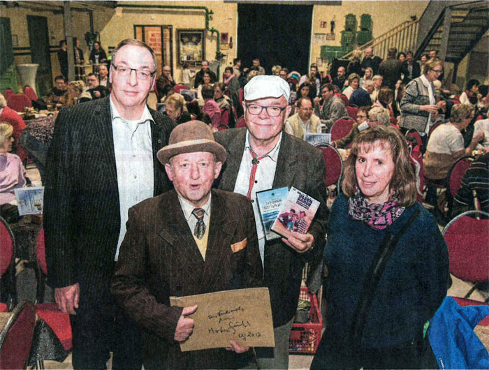 Einen Plan, der funktionierte, den hatte der Lions-Club, indem er am Sonntag zu einer Veranstaltung mit der Würchwitzer Olsenbande ins Turbinenhaus einlud. Erfreut über die ausverkaufte Benefizveranstaltung zugunsten der Kindertagesstätte Jakobsmauer in Naumburg waren deshalb auch Lions-Präsident Klaus Mischke (l.) und Kathrin Höhn vom Kita-Trägerverein. Der Spielplatz braucht dort eine Generalüberholung. Hauptdarsteller der lokal eingefärbten Olsenbande-Filme, Friedrich-Karl Steinbach als Egon, und Regisseur Helmut Pöschel zeigten neben einem Dokumentarfilm den in Naumburg gedrehten Streifen "Die Olsenbande und der vergessene Stifterschatz" mit vielen bekannten Gesichtern.