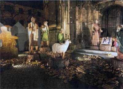 Am Ratsherrenprotal der Wenzelskirche - hinter dem Schlösschen - kann die weiter vervollständigte Naumburger Weihnachtskrippe bestaunt werden. Die Gruppe lebensgroßer Figuren aus Holz, die vom Naumburger Künstler Stefan Hutter geschaffen wurde, ist um den dritten König bereichert worden. Finanziert wurde die Figur vom Naumburger Lions Club mittels einer Spende.