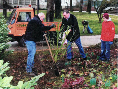 Weitere Einsatzorte waren der Wanderweg zur Rudelsburg, rund um die salinetechnischen Anlagen und die Radinsel. Hilfe erhielten die Bad Kösener diesmal von 13 Mitgliedern des Naumburger Lions-Clubs, unterwegs war sogar die Kehrmaschine. Im Kurpark wurden zwei Hibiskussträucher gesetzt, die zuvor auf der Radinsel am „Eiscafé am Wehr“ ausgepflanzt worden waren (rechts). Es wurde zudem gefegt und etlicher Müll eingesammelt. Des Weiteren sind Sträucher geschnitten worden. Über 40 Personen, die sich abschließend am einstigen Rathaus mit Gegrilltem und Kaffee stärken konnten, haben am Frühjahrsputz teilgenommen. Zum Osterfest und zum Welterbewandertag am 16. April will Bad Kösen ein gutes Bild abgeben.